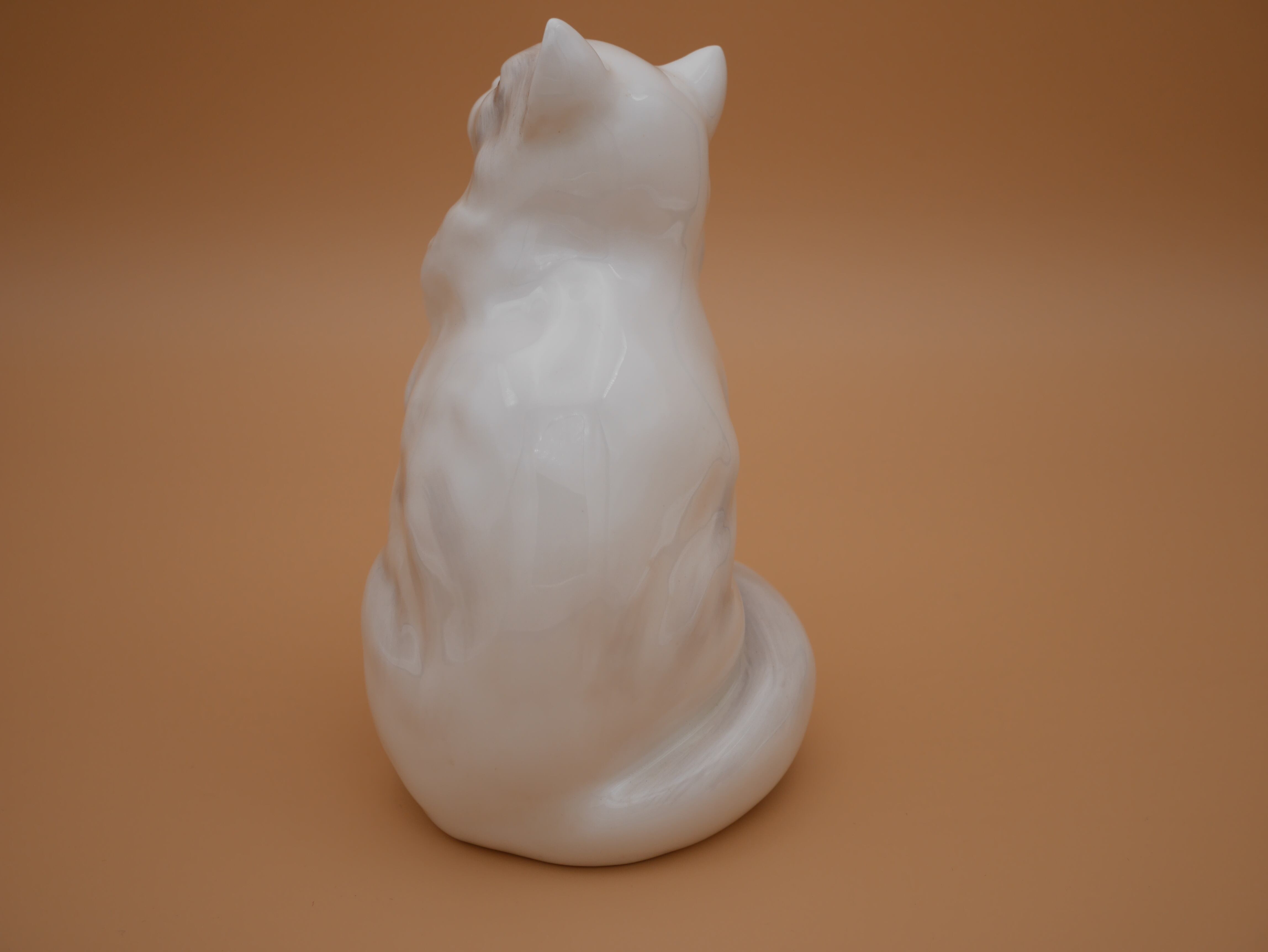 サイズは約、高さ12㎝、幅8㎝、奥行き8㎝。愛らしい猫の仕草と高いクオリティのデザインが見事に調和した作品です。