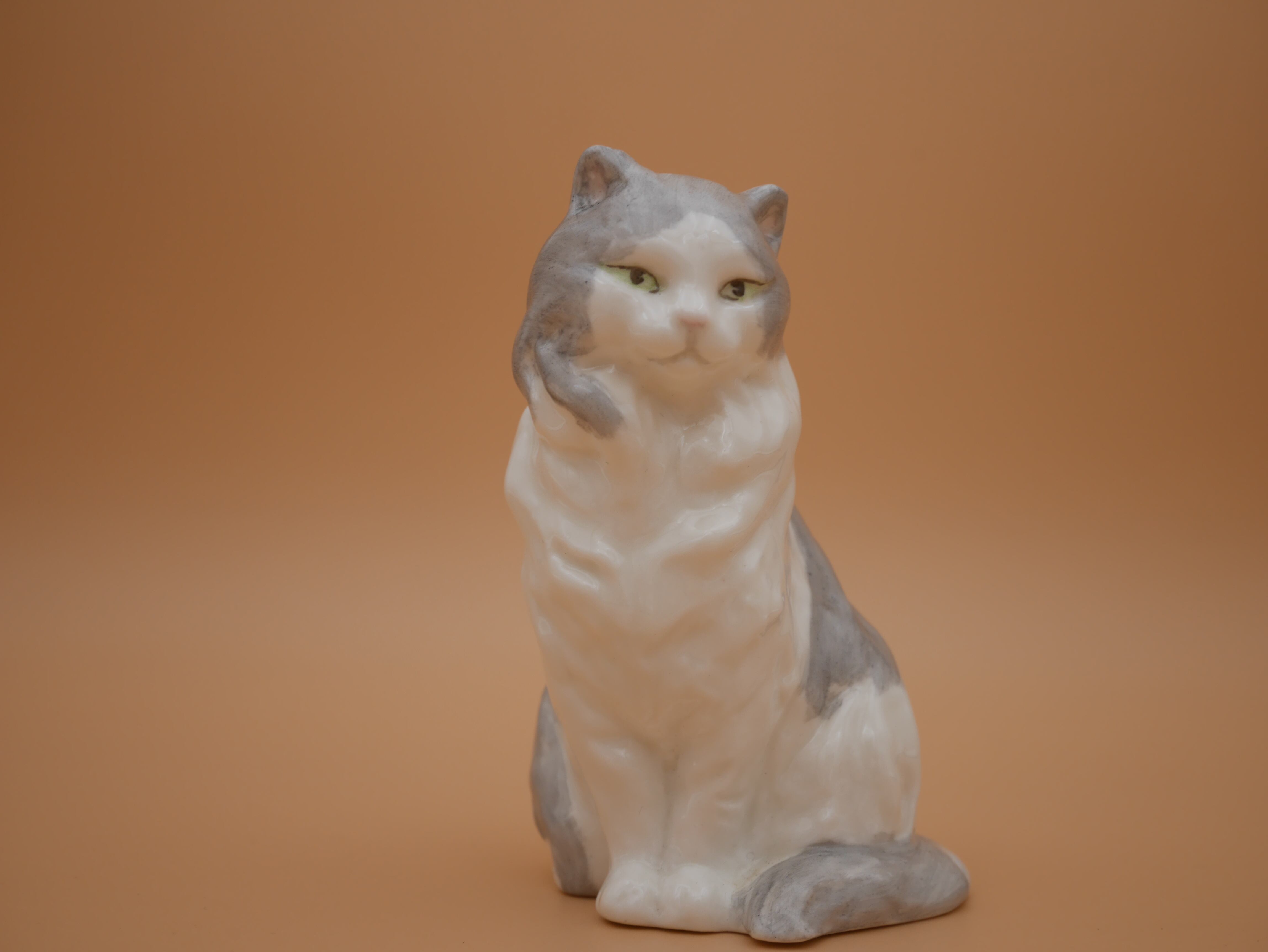 ロイヤルウースターの猫のフィギュアです。繊細な細工と美しい色合いが施され、どんなインテリアにも上品な雰囲気を加えてくれます。