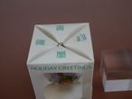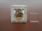 雪の降る中、猫たちがキャロリングをしています。 素材不明ですが、おそらくプラスチック製で、細い白いプラスチック繊維が球を飾っています。その上から、猫のイラストの描かれたビニールがかけてあるようです。 1980 Current, Inc. の表示があります。 外箱の大きさ 約10×9×9㎝