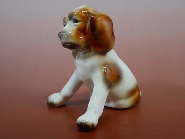 アメリカの陶器メーカーの、ビーグル犬。 気難しそうな表情です。 大きなカケ、ワレはありません。 大きさ それぞれ約 12×10×高さ13cm 製作年 不明